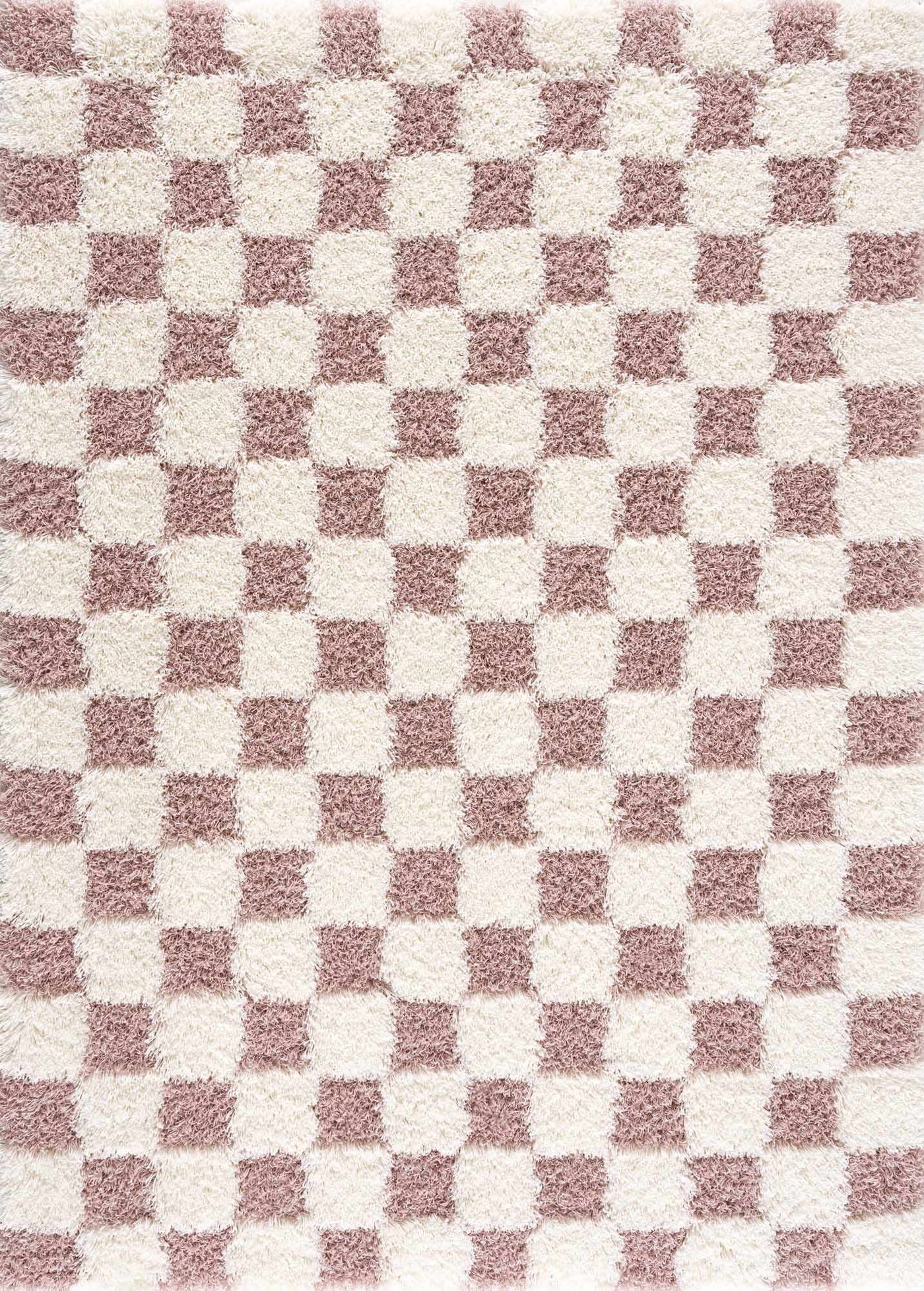 About: The Atira Pink Checkered Area Rug brings a playful and soft touch to any room with its pink and white checkered shag design. The gentle pink hues combined with crisp white create a light and airy feel, perfect for adding warmth and style to bedrooms, living rooms, or playrooms. The plush shag textu...