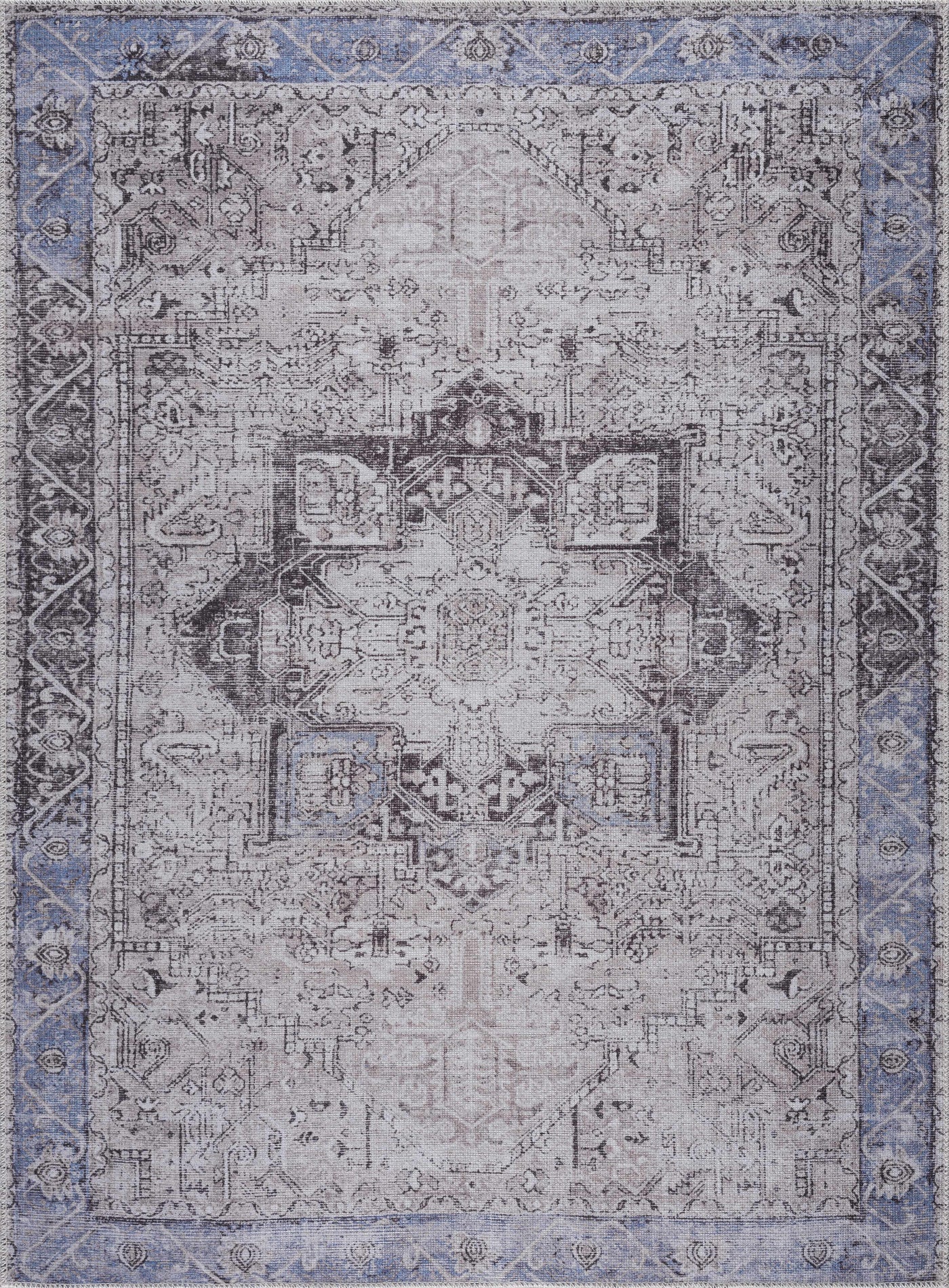 - Rosman Blue&Beige Washable Area Rug