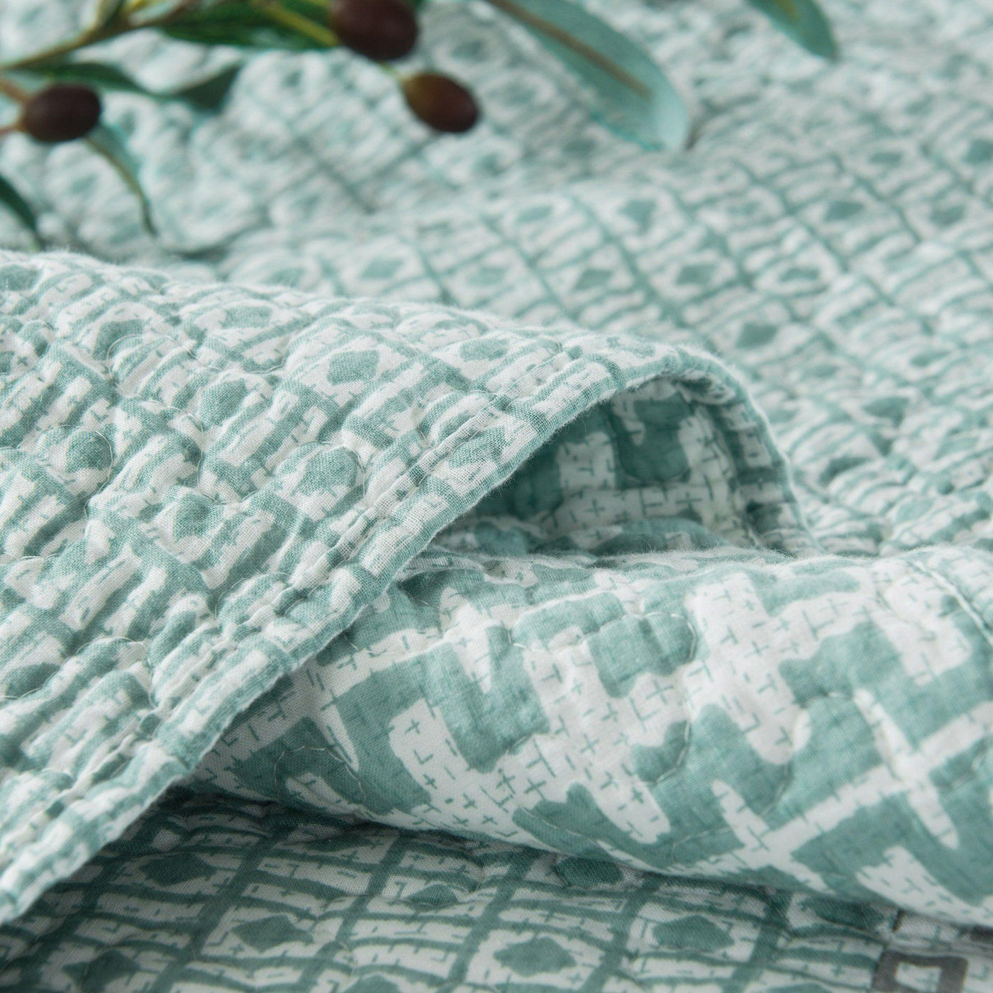 - DaDa Bedding Contemporary Mint Green Grey Geometric Cotton Quilted Bedspread Set (JHW-804)