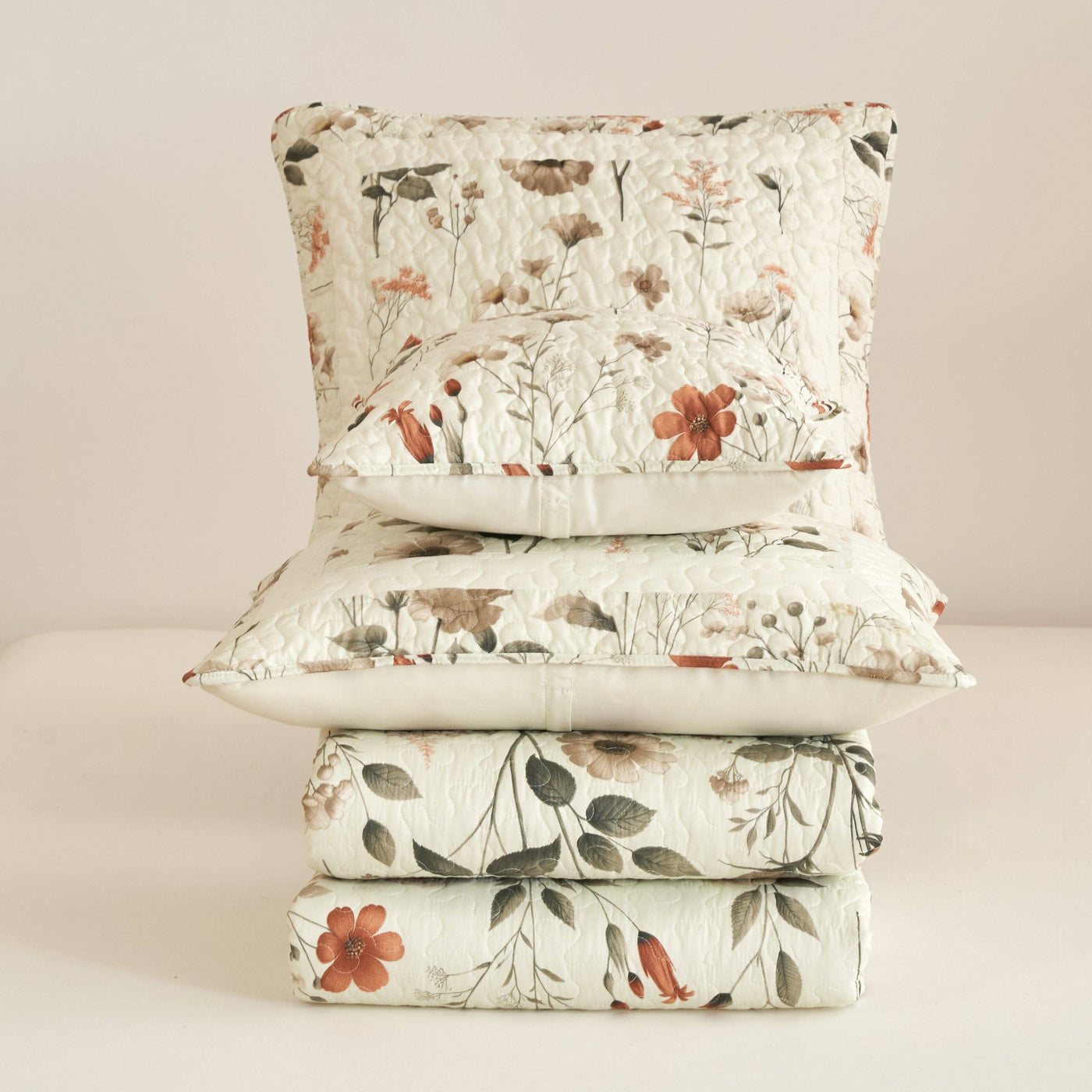 DaDalogy Enchanted Meadow Bed in a bag Set - Victoria Garden Delicate Floral Symphony in Beige, Rose, and Soft Green, Luxuriously Soft Quilted Set
