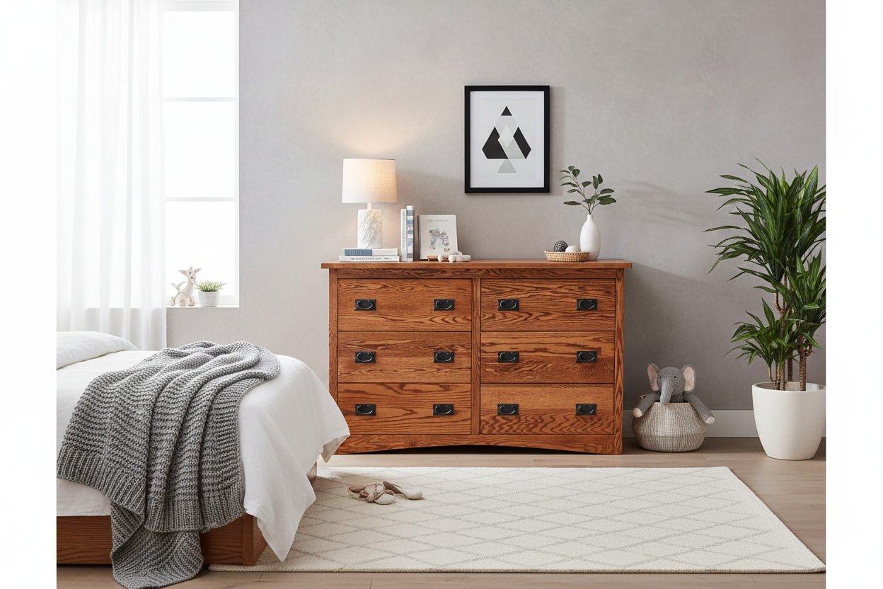 We welcome your customized request of the American Mission Oak Kids 6-Drawer Dresser.