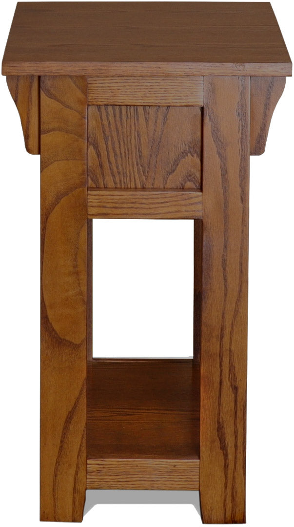 Perfect for beside your favorite chair, this beautifully crafted Mission-style chairside table brings functionality and Arts & Crafts elegance to your living space. Expertly handcrafted from premium solid oak, this narrow accent table features clean lines, a lower shelf, and the timeless beauty of Mission craftsmanship.