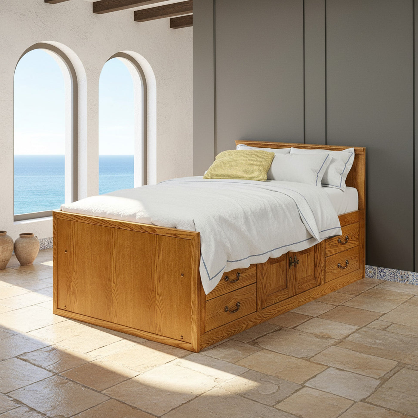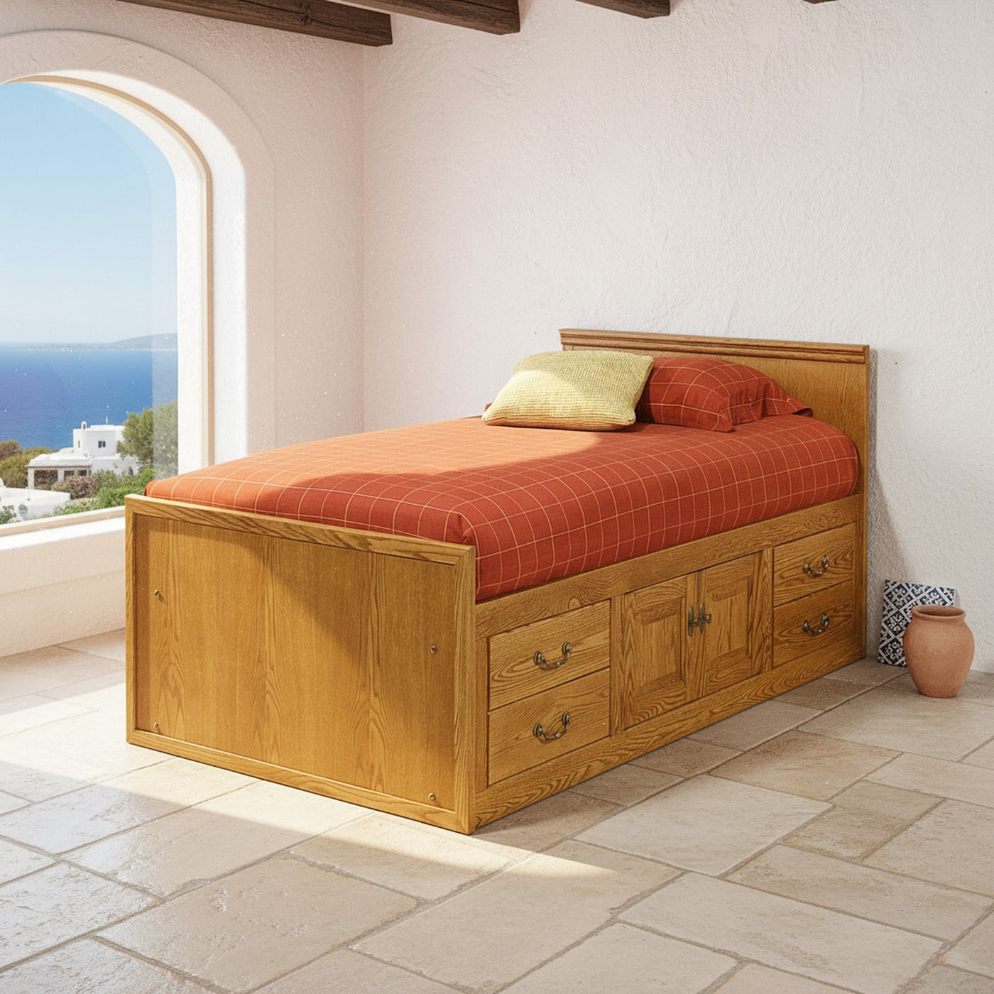 Traditional Oak Kids TWIN Chest Bed.