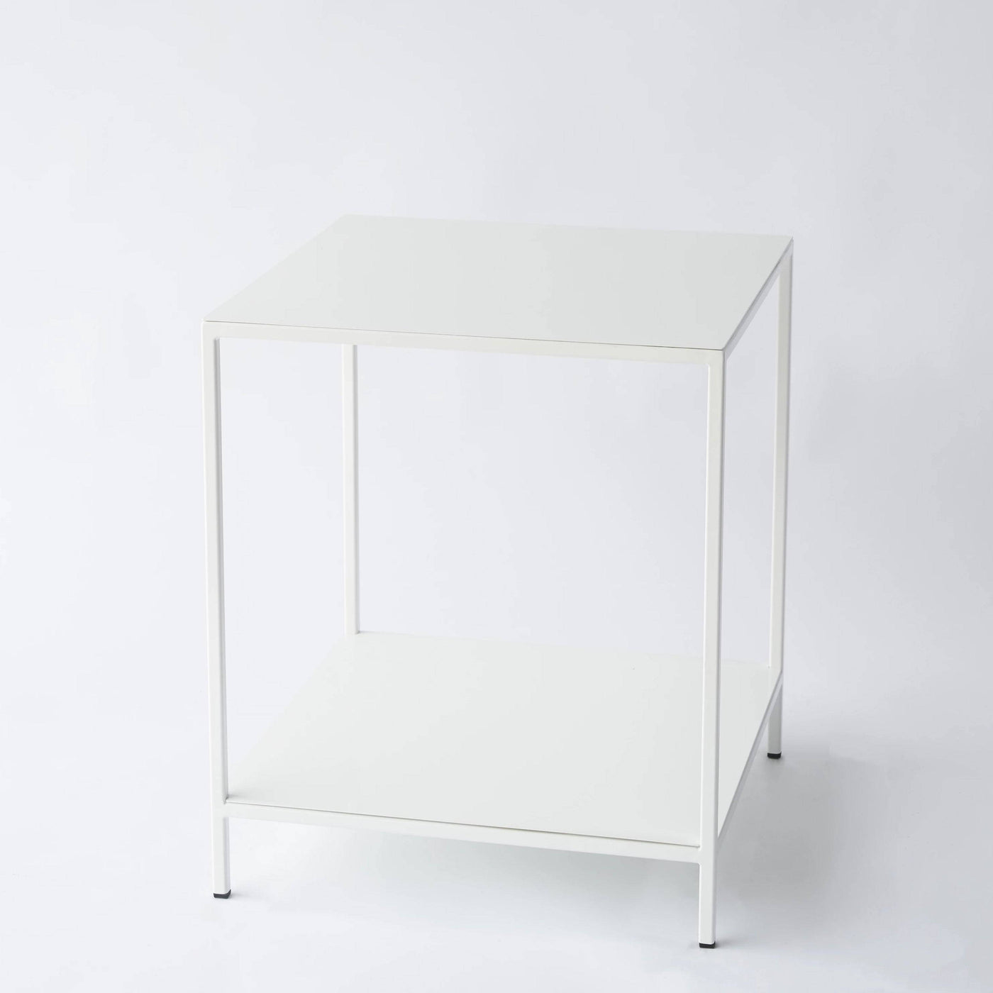 The side/end tables are 17 x 17 x 20" tall built on a steel tube frame that. The table frame and shelf options are available in the drop down menus.